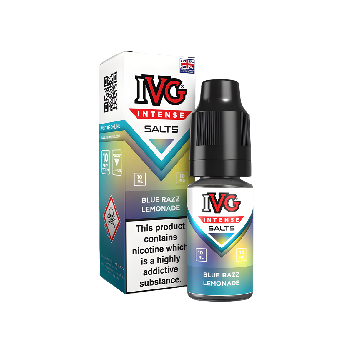 Blue Razz Lemonade Nic Salt E-Liquid by IVG Intense Salts, crafted with a 50% VG and 50% PG ratio, this vape juice produces a mild amount of vapour, perfect for MTL (Mouth To Lung) vaping — replicating the sensation of smoking a traditional cigarette. For the best performance, pair it with your favourite refillable MTL vape kit.