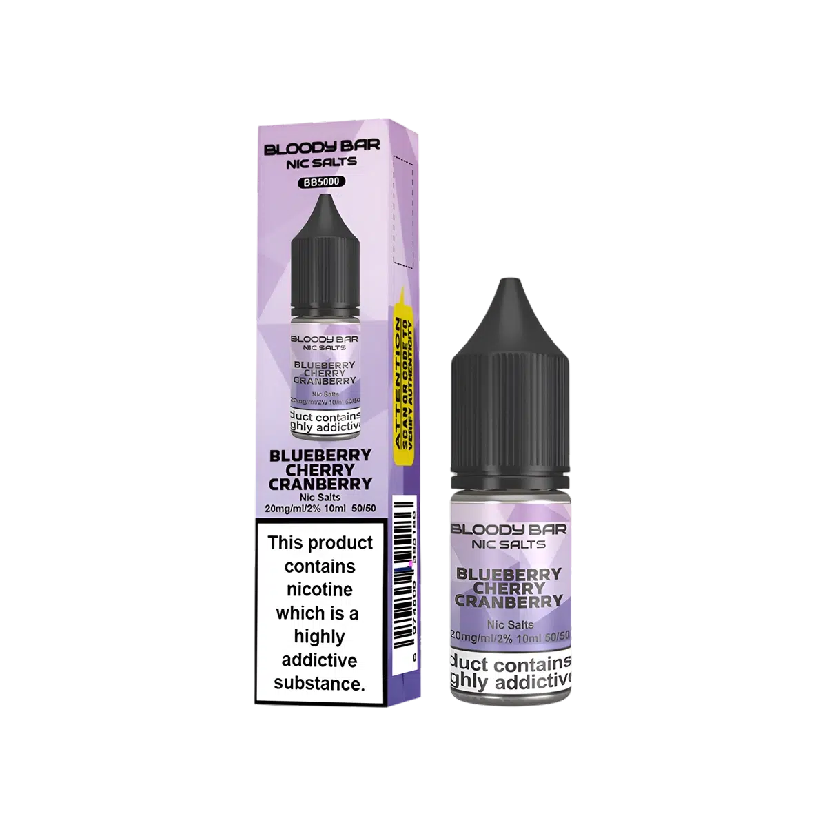Blueberry Cherry Cranberry Nic Salt E-Liquid by Bloody Bar combines sweet blueberry and juicy cherry flavours on the inhale, followed by a tangy, refreshing cranberry exhale for a perfectly balanced fruity vape.