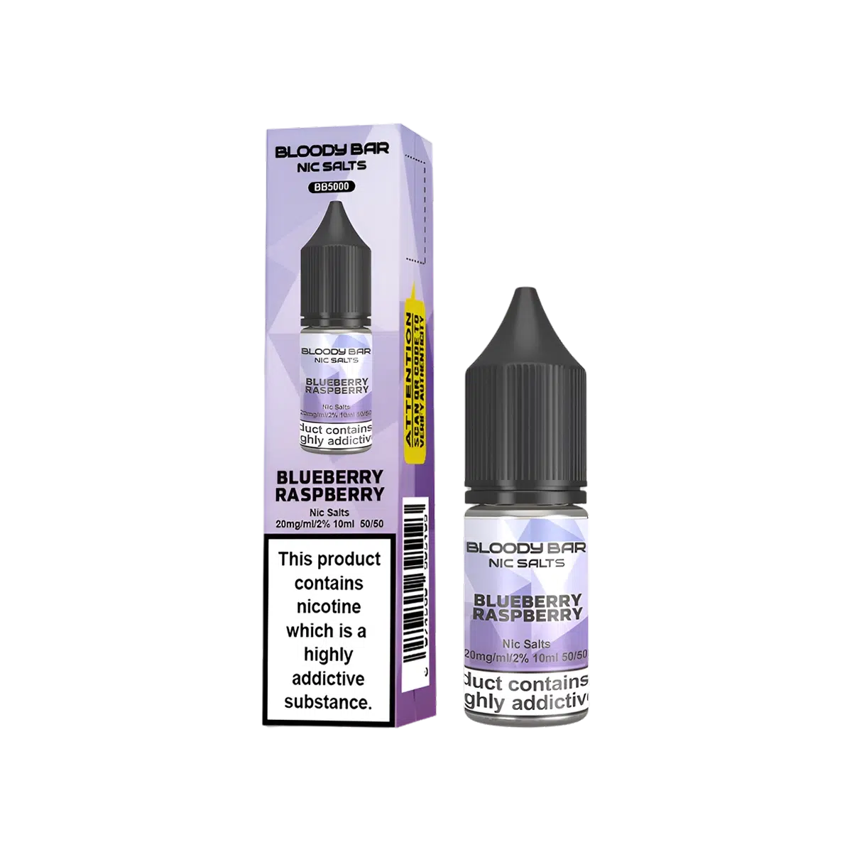 Bloody Bar Blueberry Raspberry Nic Salt E-Liquid delivers a deliciously juicy fusion of ripe blueberries and sweet raspberries. Each puff offers a bold, fruity burst that balances tangy and smooth notes from start to finish.