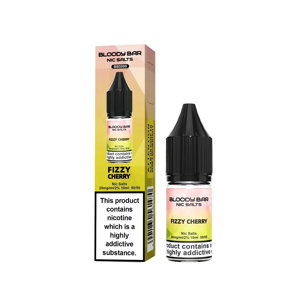 Fizzy Cherry Nic Salt E-Liquid by Bloody Bar captures the classic taste of sparkling cherry soda, blending tangy red cherry with sweet, fizzy notes for a refreshing vape.