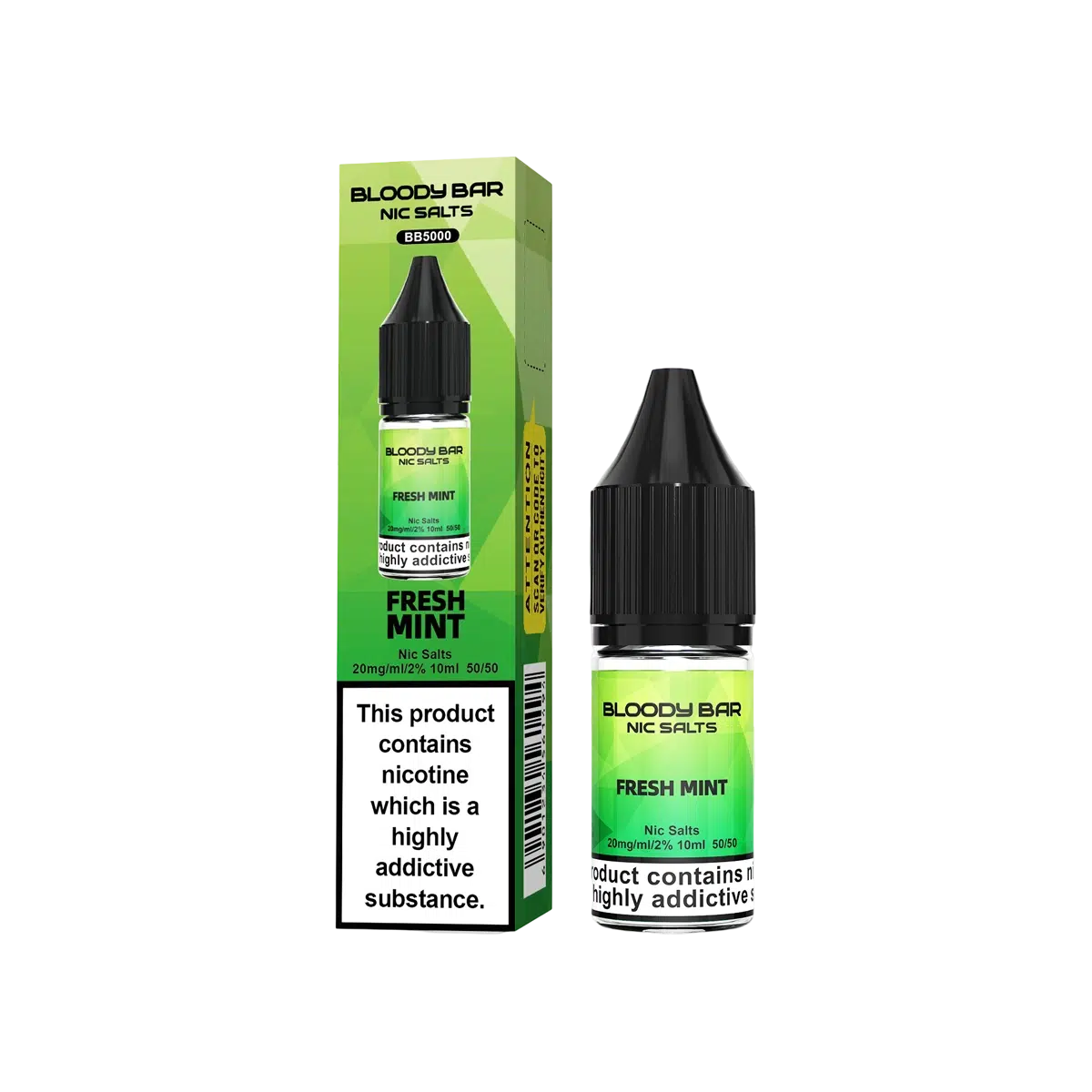 Fresh Mint Nic Salt E-Liquid by Bloody Bar delivers a refreshing mix of cool, crisp, and sweet mint flavours, offering a smooth and light vape perfect for all-day enjoyment.