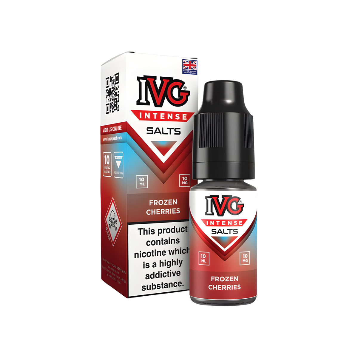 Frozen Cherries Nic Salt E-Liquid by IVG Intense Salts, crafted with a 50% VG and 50% PG ratio, this vape juice produces a mild amount of vapour, perfect for MTL (Mouth To Lung) vaping — replicating the sensation of smoking a traditional cigarette. For the best performance, pair it with your favourite refillable MTL vape kit.