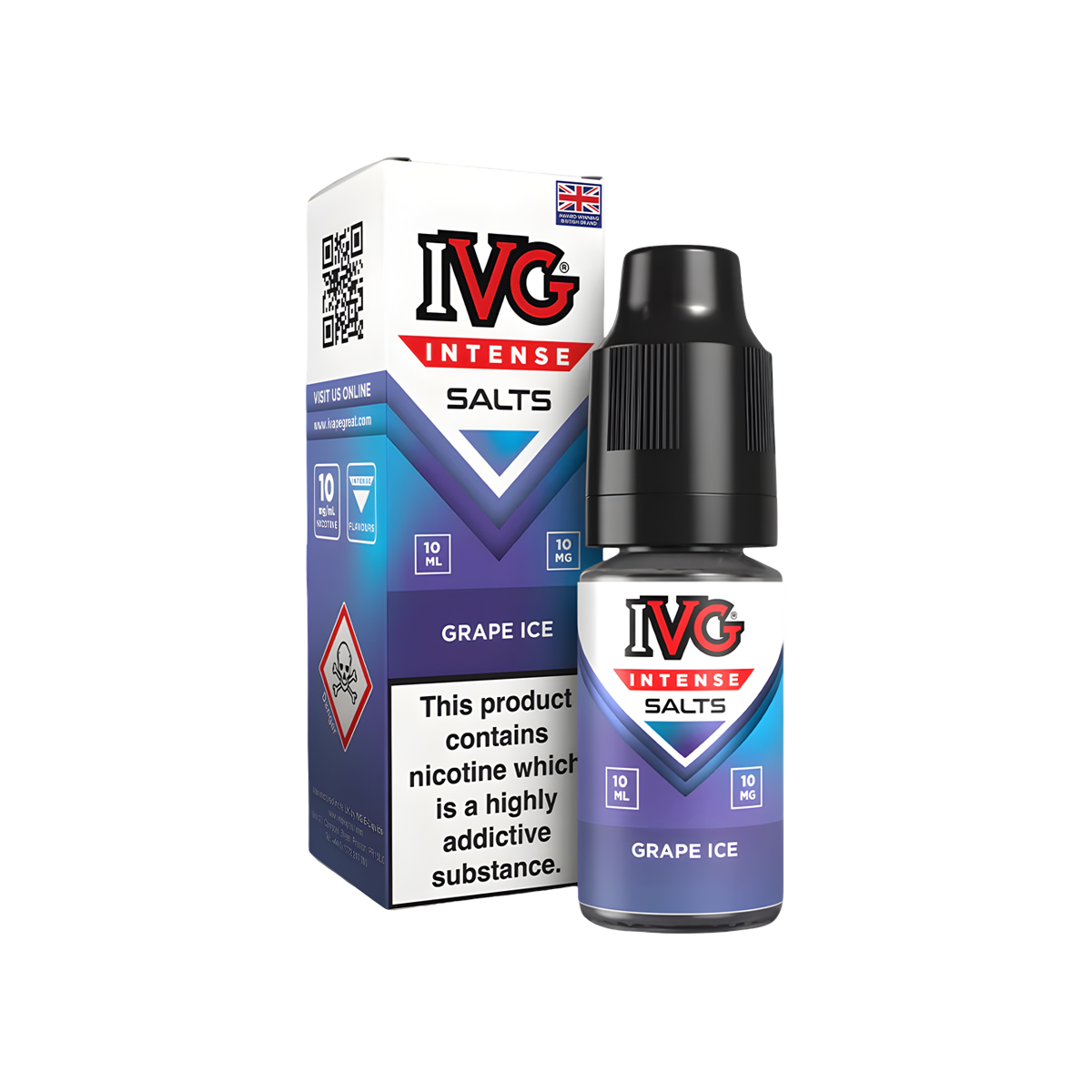 Grape Ice Nic Salt E-Liquid by IVG Intense Salts combines the rich, juicy taste of sweet black grapes with an icy menthol finish, creating a smooth, refreshing, and fruity vape.