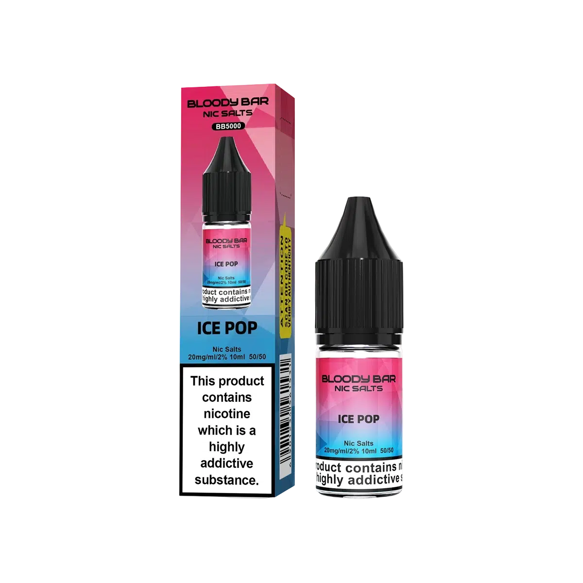 Ice Pop Nic Salt E-Liquid by Bloody Bar (Gummy Bear) available in 10mg and 20mg nicotine strengths, this nic salt formula provides a smooth throat hit while quickly satisfying cravings. Each 10ml bottle features a 50% VG / 50% PG ratio, ideal for MTL (Mouth To Lung) vaping — giving you a cigarette-like draw with discreet vapour production.