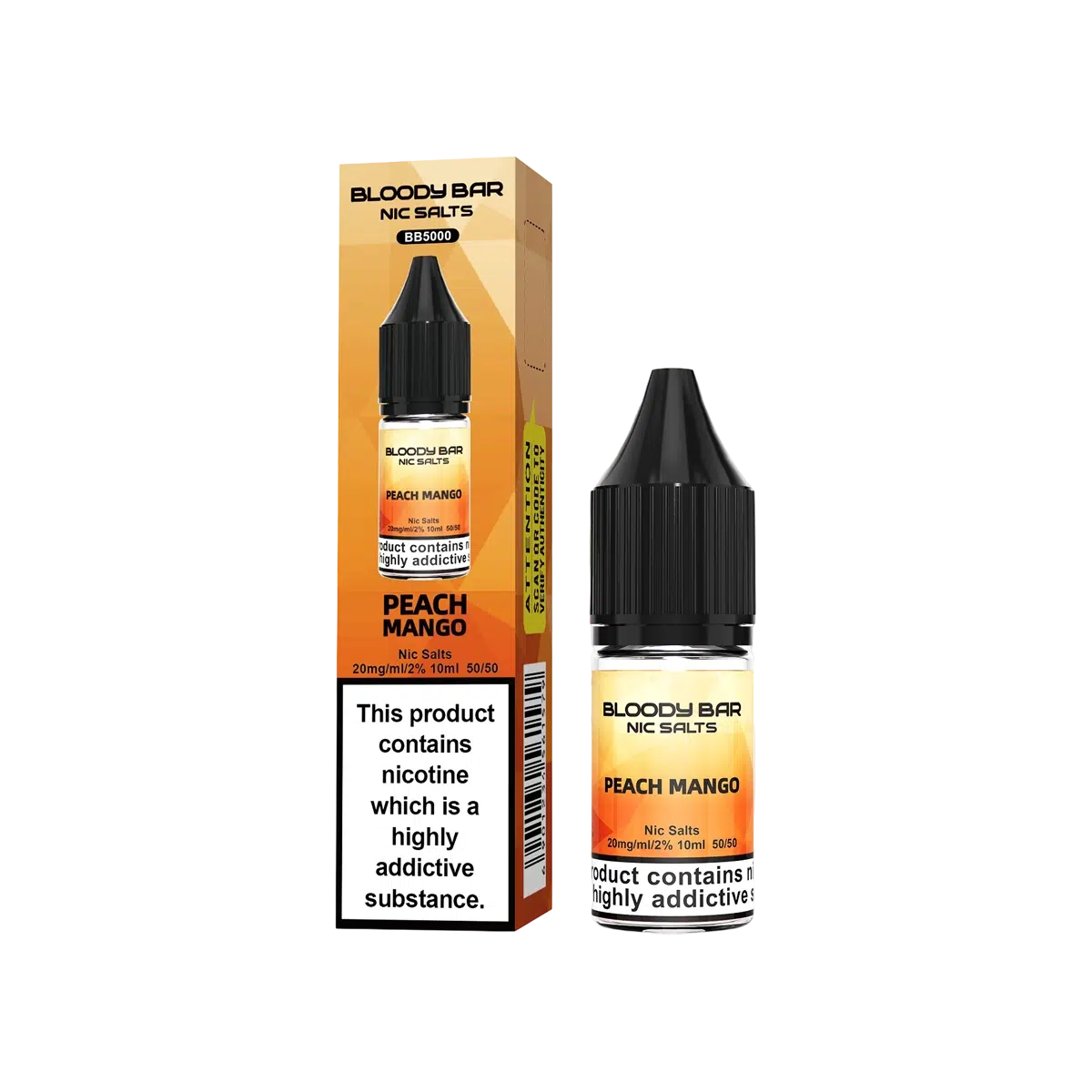 Peach Mango Nic Salt E-Liquid by Bloody Bar (Gummy Bear) available in 10mg and 20mg nicotine strengths, this nic salt formula provides a smooth throat hit while quickly satisfying cravings. Each 10ml bottle features a 50% VG / 50% PG ratio, ideal for MTL (Mouth To Lung) vaping — giving you a cigarette-like draw with discreet vapour production.