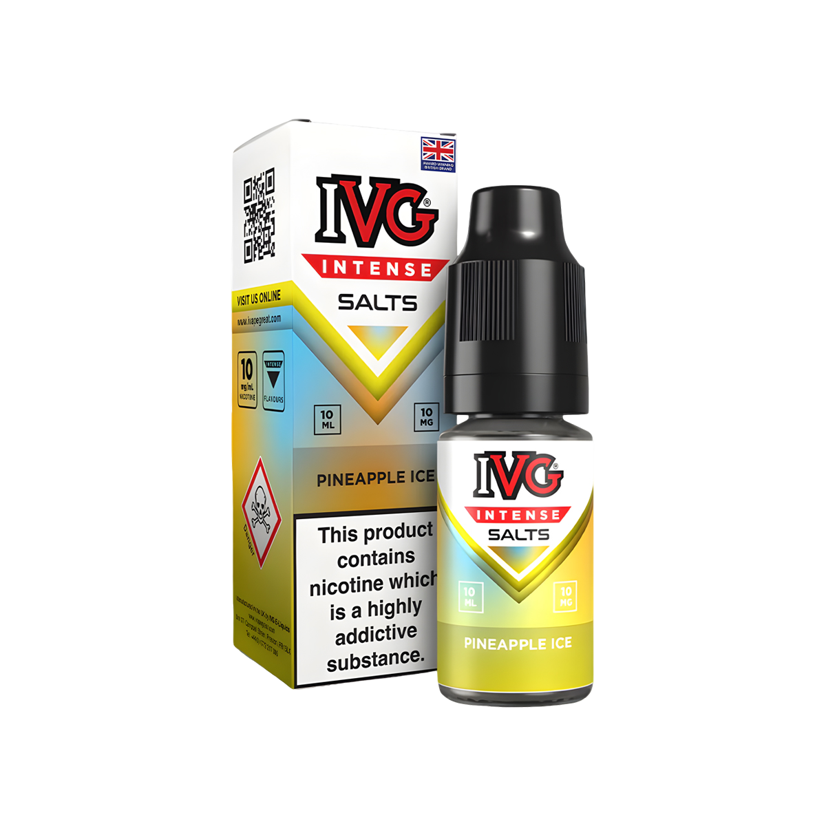 Pineapple Ice Nic Salt E-Liquid by IVG Intense Salts, crafted with a 50% VG and 50% PG ratio, this vape juice produces a mild amount of vapour, perfect for MTL (Mouth To Lung) vaping — replicating the sensation of smoking a traditional cigarette. For the best performance, pair it with your favourite refillable MTL vape kit.