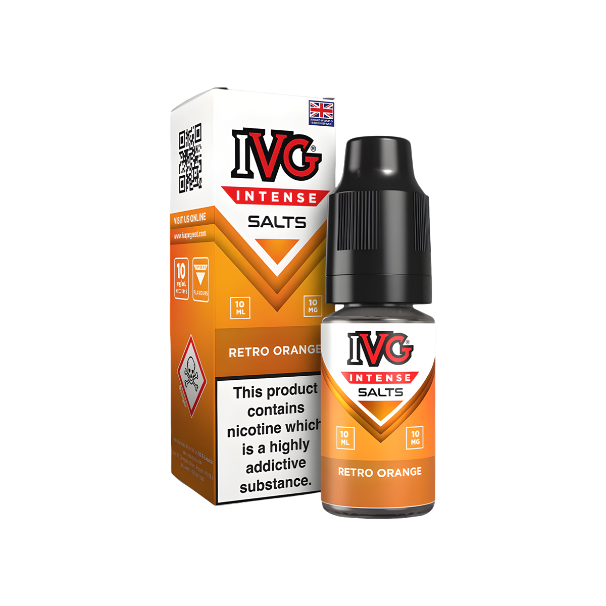 Retro Orange Nic Salt E-Liquid by IVG Intense Salts, crafted with a 50% VG and 50% PG ratio, this vape juice produces a mild amount of vapour, perfect for MTL (Mouth To Lung) vaping — replicating the sensation of smoking a traditional cigarette. For the best performance, pair it with your favourite refillable MTL vape kit.