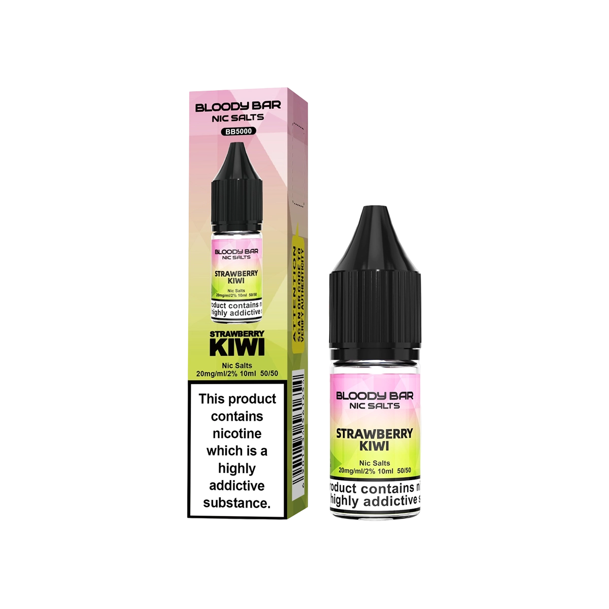 Strawberry Kiwi Nic Salt E-Liquid by Bloody Bar combines the sweetness of ripe strawberries with the tangy flavour of kiwi, delivering a bold, fruity, and perfectly balanced all-day vape.