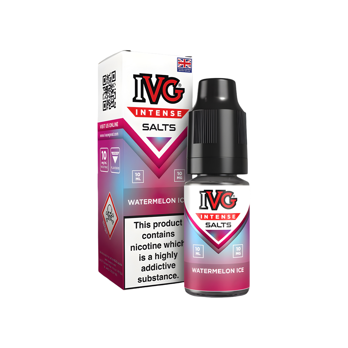 Watermelon Ice Nic Salt E-Liquid by IVG Intense Salts, crafted with a 50% VG and 50% PG ratio, this vape juice produces a mild amount of vapour, perfect for MTL (Mouth To Lung) vaping — replicating the sensation of smoking a traditional cigarette. For the best performance, pair it with your favourite refillable MTL vape kit.