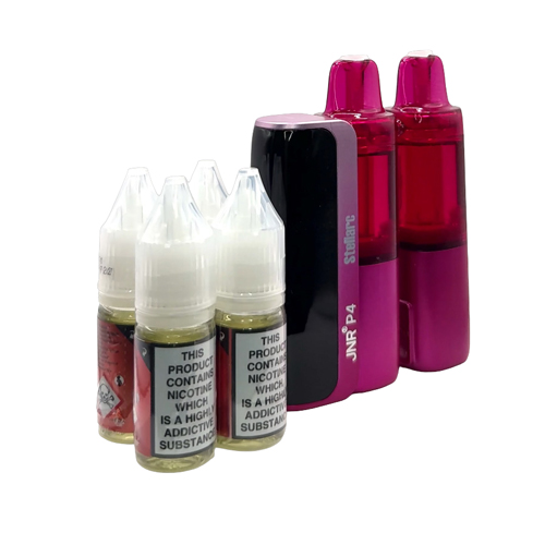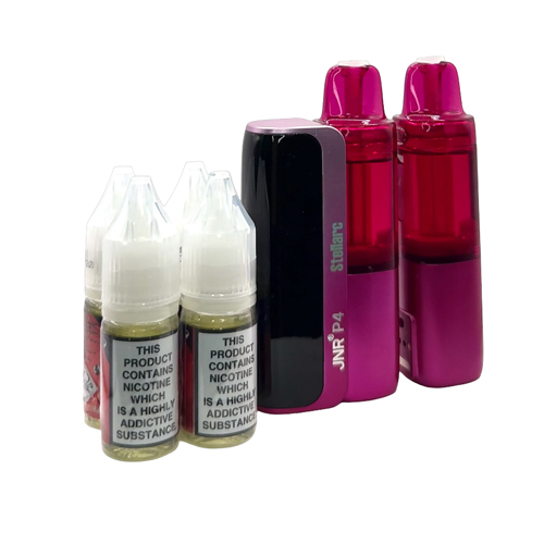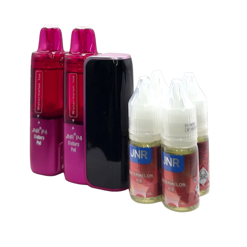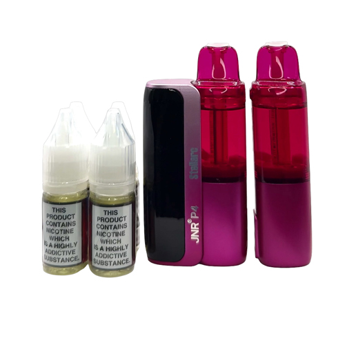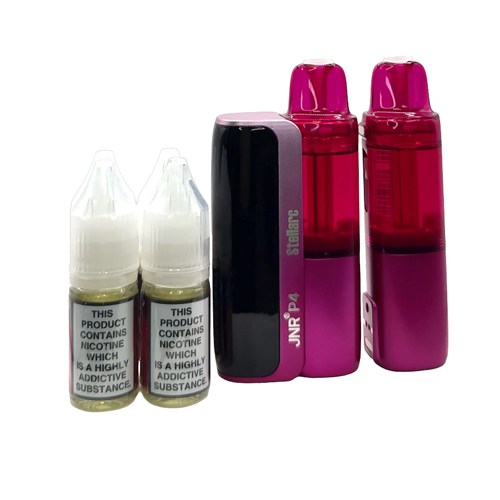 Enjoy up to 100,000 puffs with the JNR P4 Stellarc 100K Vape Kit. Features dual pods, dual flavours, visible e-liquid window, dual mesh coils, and a powerful 1200mAh rechargeable battery. Pre-filled with 64ml of 20mg nic salt. Perfect for MTL vaping and beginners, available in 10 flavour combos.