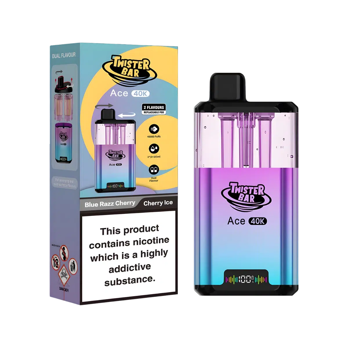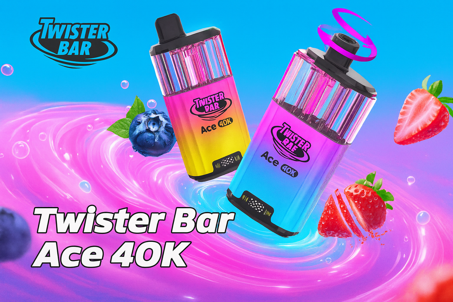 Twister Bar Ace 40K Vape Kit – Up to 40,000 puffs, dual flavours, and a removable 850mAh battery. The ultimate big puff vape and disposable alternative.