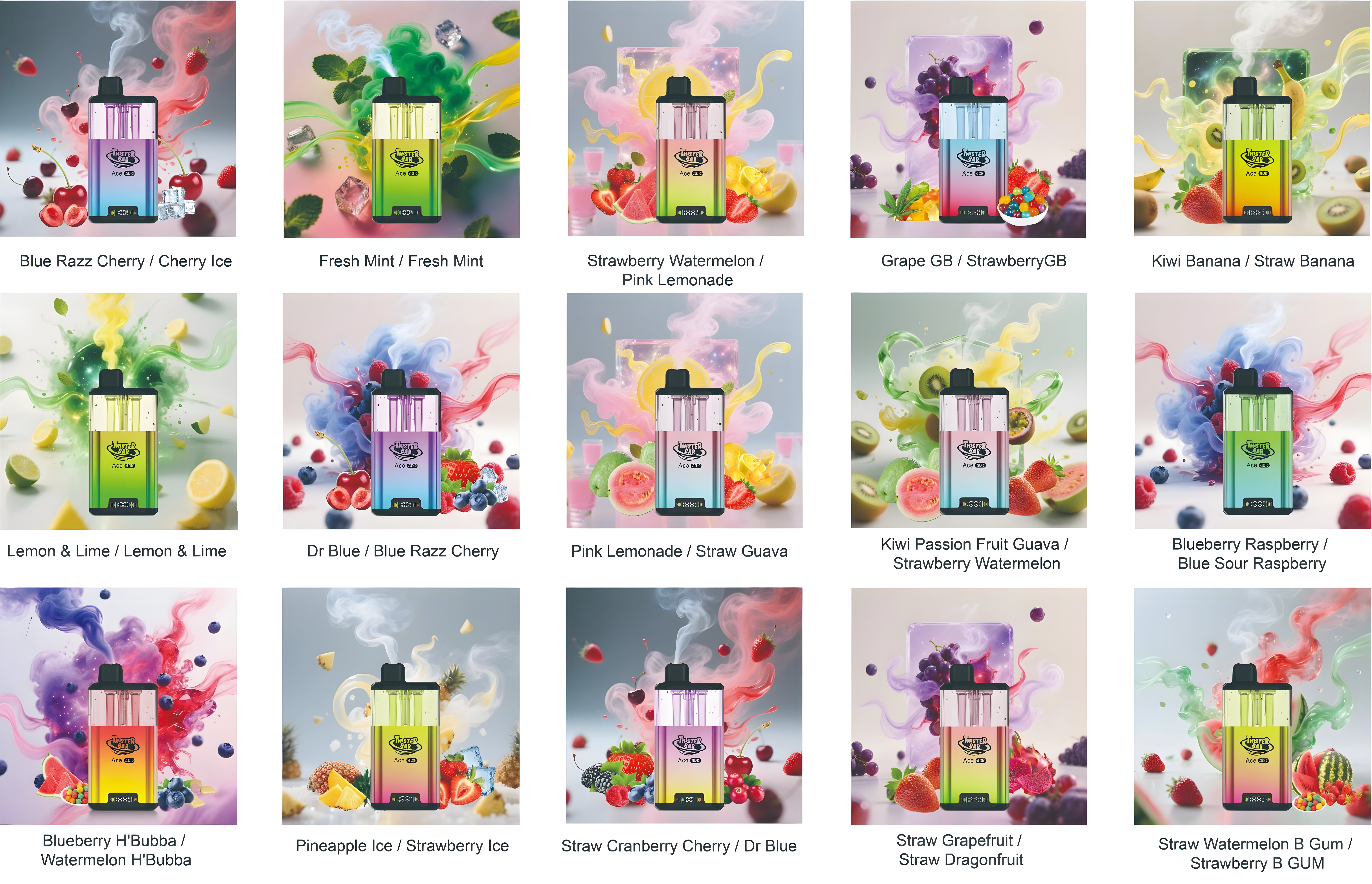 Enjoy 15 delicious dual-flavour combinations, each offering a unique twist of fruity, icy, and candy-inspired tastes for a bold vaping experience.