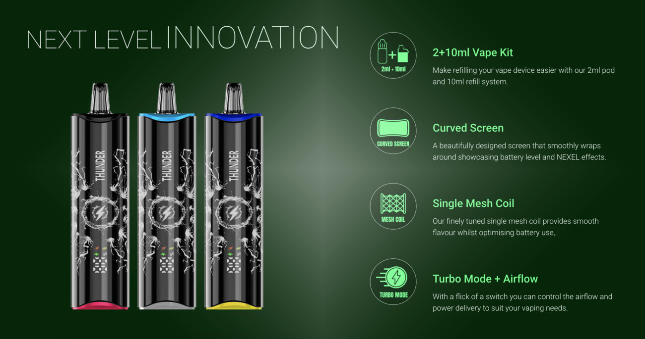 The Nexel Thunder 15K is more than just another pod kit—it’s a step forward in vaping convenience and sustainability. With a huge puff count, sleek design, fast charging, and an amazing variety of flavours, it’s ideal for both beginners and long-time vapers.